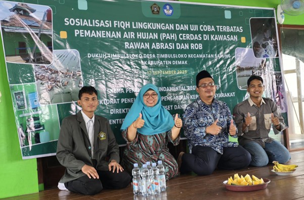 Kesadaran menjaga lingkungan hidup bukan hanya persoalan teknis, tetapi juga bagian yang tak terpisahkan dari nilai-nilai spiritual. Hal itu diungkap Dr M Choirun Nizar SHI MHI di Timbulsloko Sayung Demak, Kamis (18/9/2025). Sosialisasi ini merupakan satu rangkaian dari pengabdian kepada masyarakat yang diketuai Dr Mila Karmilah ST MT. Selain itu juga dilakukan uji coba terbatas Smart Rainwater Harvesting (SMART PAH).